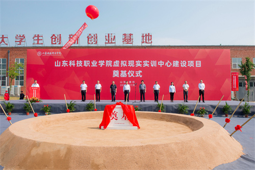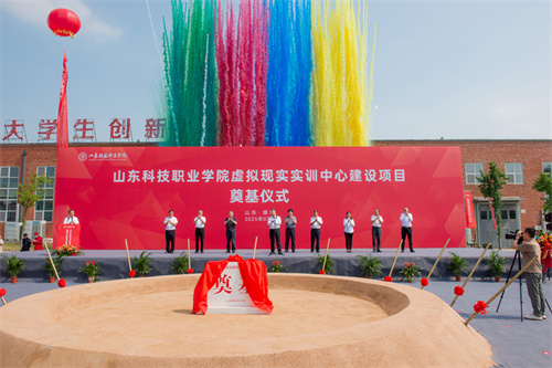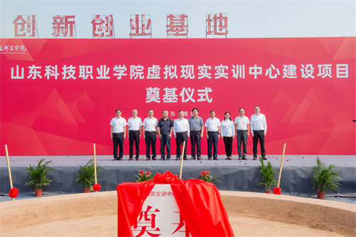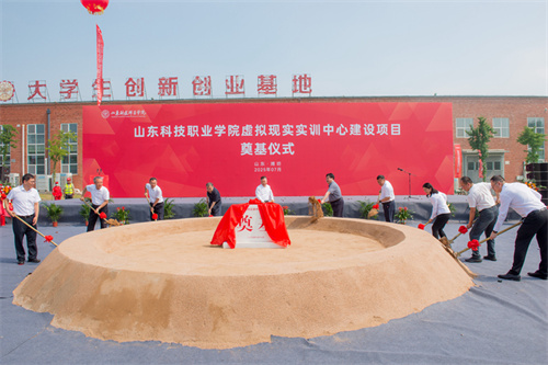 2025年7月17日上午,山東科技職業(yè)學院虛擬現(xiàn)實實訓中心項目奠基儀式在項目現(xiàn)場隆重舉行。學院黨委書記鄭德前,集團公司總裁朱九洲,山東省工程咨詢院黨組成員、副院長何健,山東建筑大學設計集團有限公司董事長、總經理李端杰,招商銀行濰坊分行黨委書記、行長潘兆強,學院黨委委員、紀委書記秦建坤,學院黨委委員、副校長徐曉雁、董傳民,學院副校長張振東出席奠基儀式。